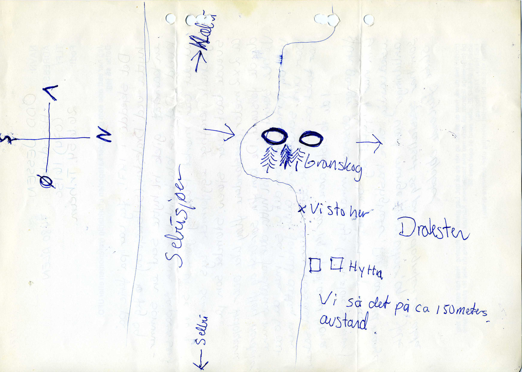 Jeg var på ferie på: hytta ved Draksten (Selbusjøen). Jeg og en kamerat gikk til hytta