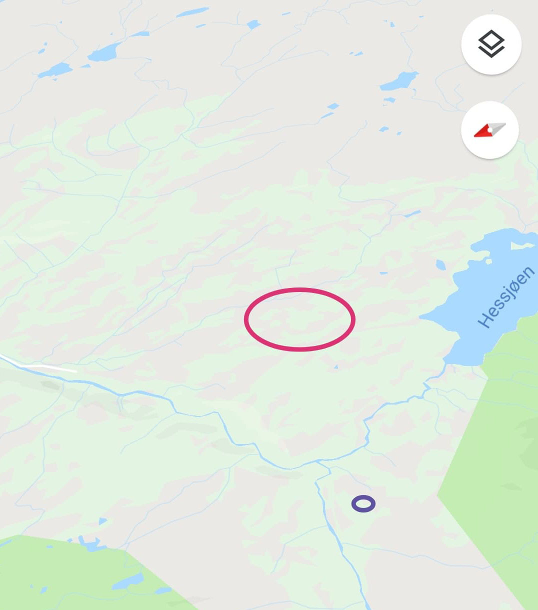 På bildet under er det lagt inn et gult merke der han så blinkrt. Hva var det sa han. Jan snudde seg og så samme veien. Da fikk han se et