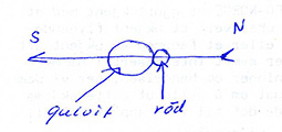 An oblong object with a pointed front, a cross at the back and a dark area in the middle.