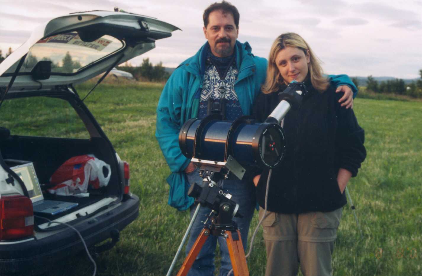| Massimo Tedorani og Simona Righini foran teleskopet på Aspåskjølen den