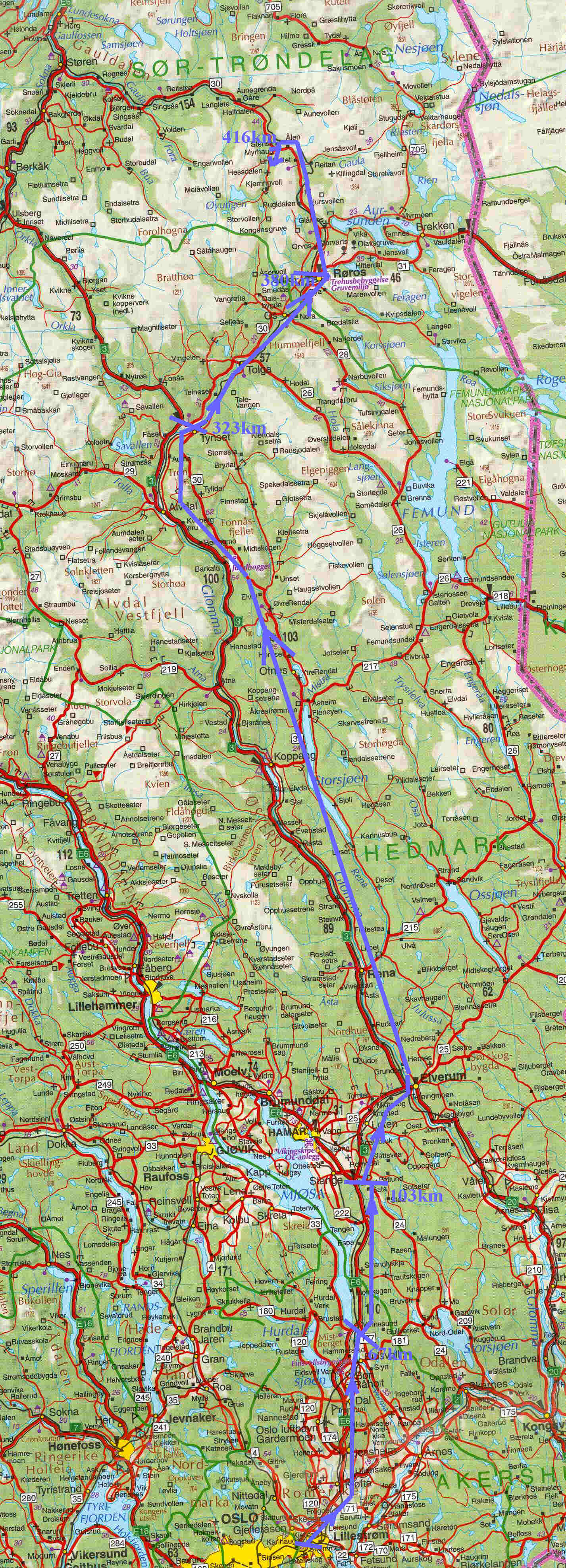 Avstandskart: Oslo-Hessdalen