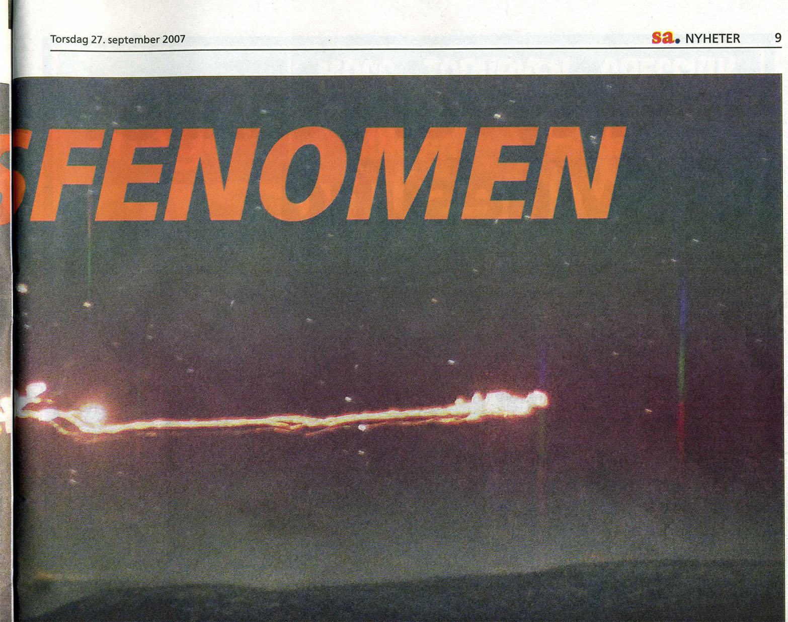 på torsdag kveld, og bildet som ble tatt klokken 21:58 fra Rognefjell mot vest-syd-vest. Eksponeringstiden var 30 sekunder. Fjellet under lyset er